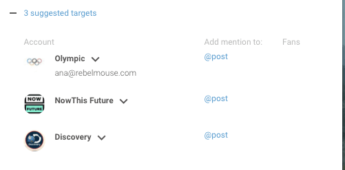 If you multiple select several Facebook videos in the Add Media bar, the authors of those videos will show up as suggested targets in the scheduling tool. See it all in action in the video above. 👆