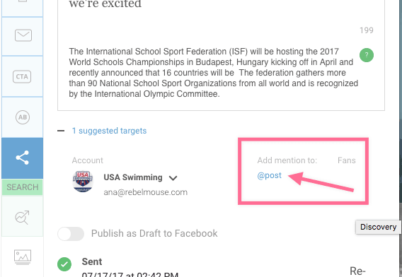 We've taken social sharing one step further. Now, you can connect with influencers in a flash. When you add a Facebook video from a URL, you will automatically see that Facebook video's author as a suggested Facebook target to tag + interact with.