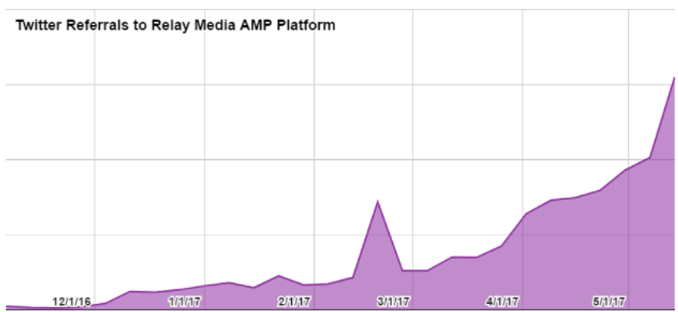 Relay's Twitter referrals spiked once the Google AMP rollout on Twitter was completed.
