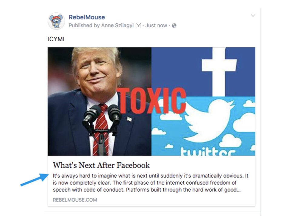 Facebook changed the rules this summer for media on its platform. Facebook's latest update eliminated the ability to change an article's metadata — in other words, you have to keep and use the Open Graph (OG) metadata and image that was set up when the post was originally written. It's a way to ensure that misleading or polarizing information isn't inserted into the metadata causing it to be shared and spread incorrectly.