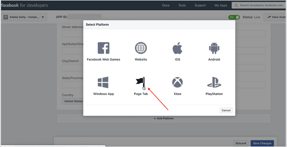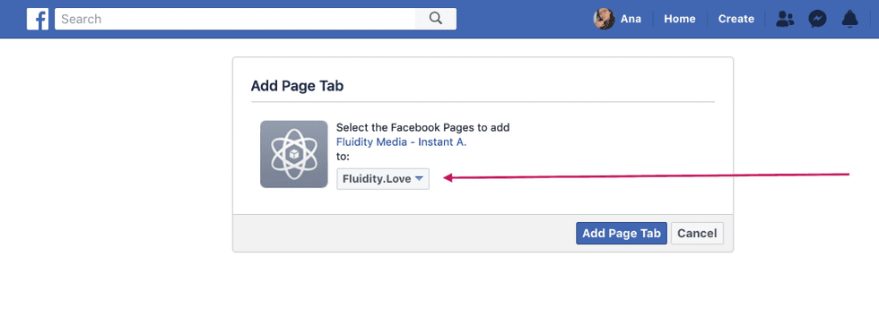 Paste your link into your browser's URL bar and go to it. Facebook will then prompt you to associate the new tab you've created with a Facebook Page. Select the correct Facebook Page and click Add Page Tab: