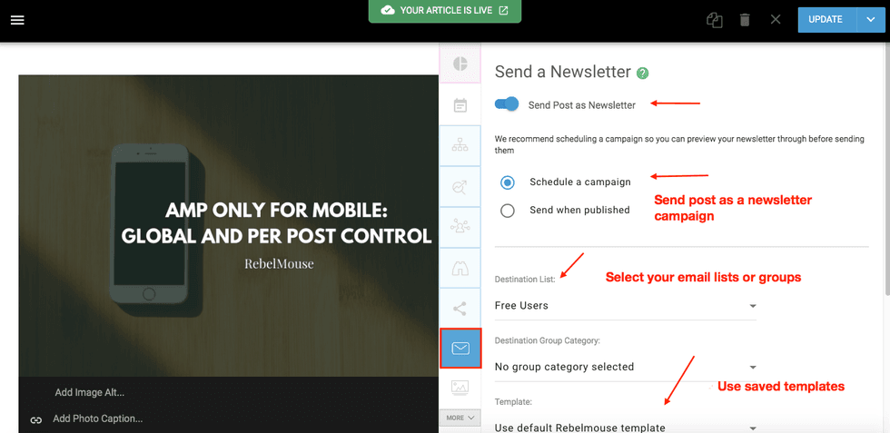 Use Particles, Media, and Images: Google looks for standout articles that took a lot of time, care, and love to produce. Creating articles that are full of dynamic media, including user-generated content, slideshows, multi-column layouts, and more, will tip off Google that it's crawling a carefully written post. It's true that quality content matters the most, but the presentation is also important, too. Multidimensional media is a vital way to improve any article's visual score. Be sure to use RebelMouse's Particle Assembler and Add Media Bar for inspiration.