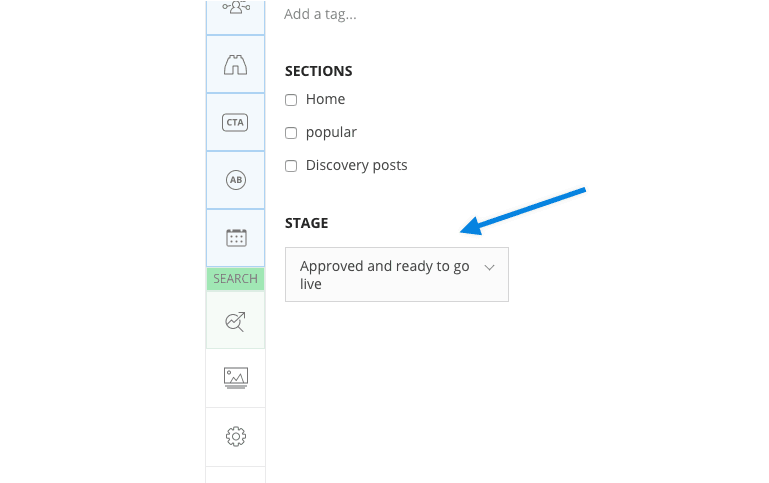 Note: Stages for already-published posts are not visible in the Entry Editor.