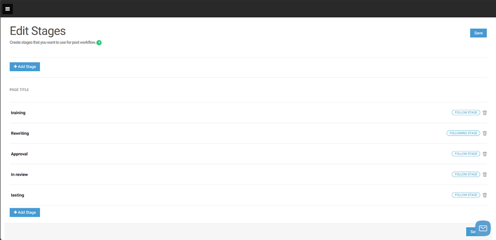 Using Stages Dashboard, you can easily optimize your workflow process by assigning a different stage to each post before publication. You can create as many stages as you'd like to best align with your team's workflow thoroughly and efficiently.