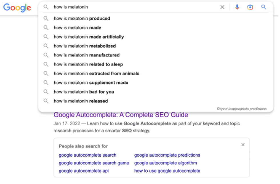 As you type a word or even a letter, Google’s powerful search feature populates the search bar with a list of search suggestions.