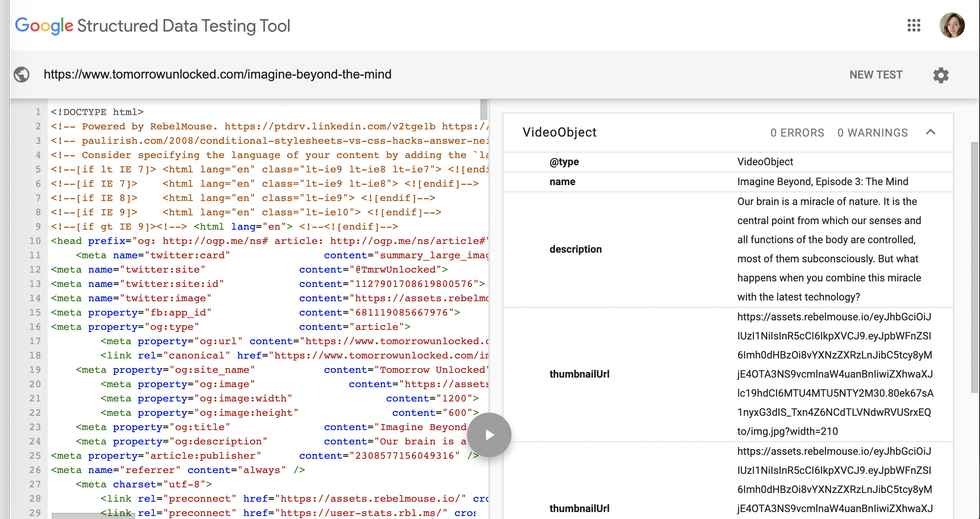 The same workflow applies for videos in RebelMouse's Particle Assembler. Any video added to a particle will be automatically marked as @VideoObject. It's important to include the same descriptive properties for your video as listed above, otherwise Google may not be able to extract enough information about the video to index it properly.
