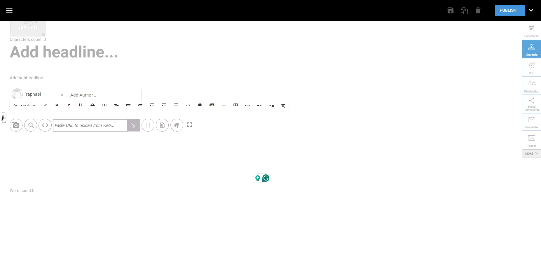When adding media from YouTube, Instagram, or other platforms, a dialog will appear showing tags related to the content that may be relevant. You can select any of these tags and click “ADD” to include them in your article.