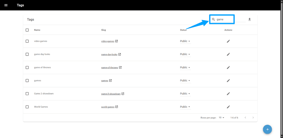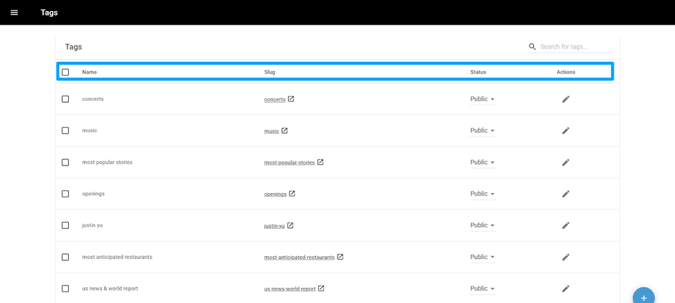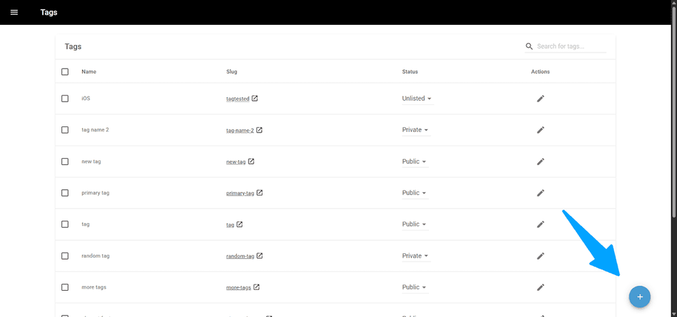 - Actions: It shows a pen icon to edit your tag.