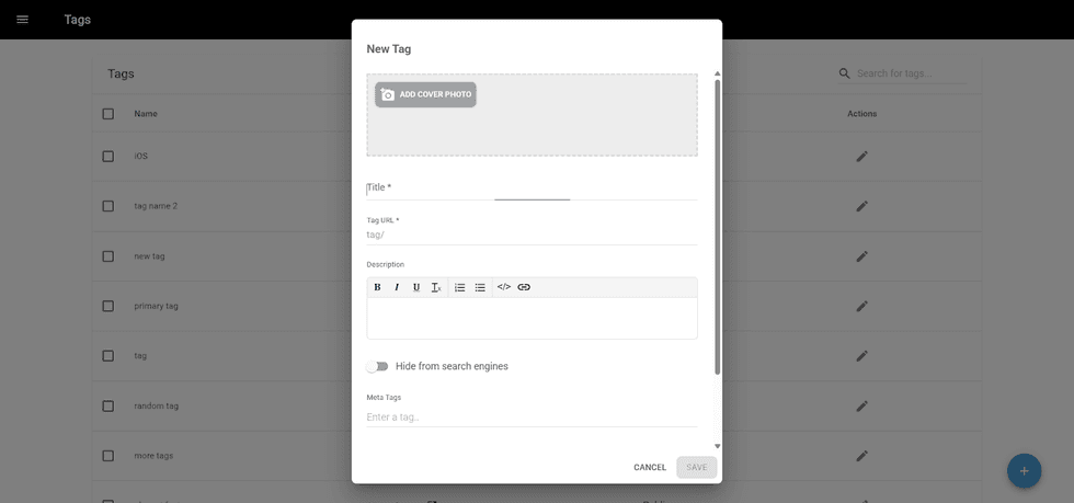 - Description: description to be shown on the tag page