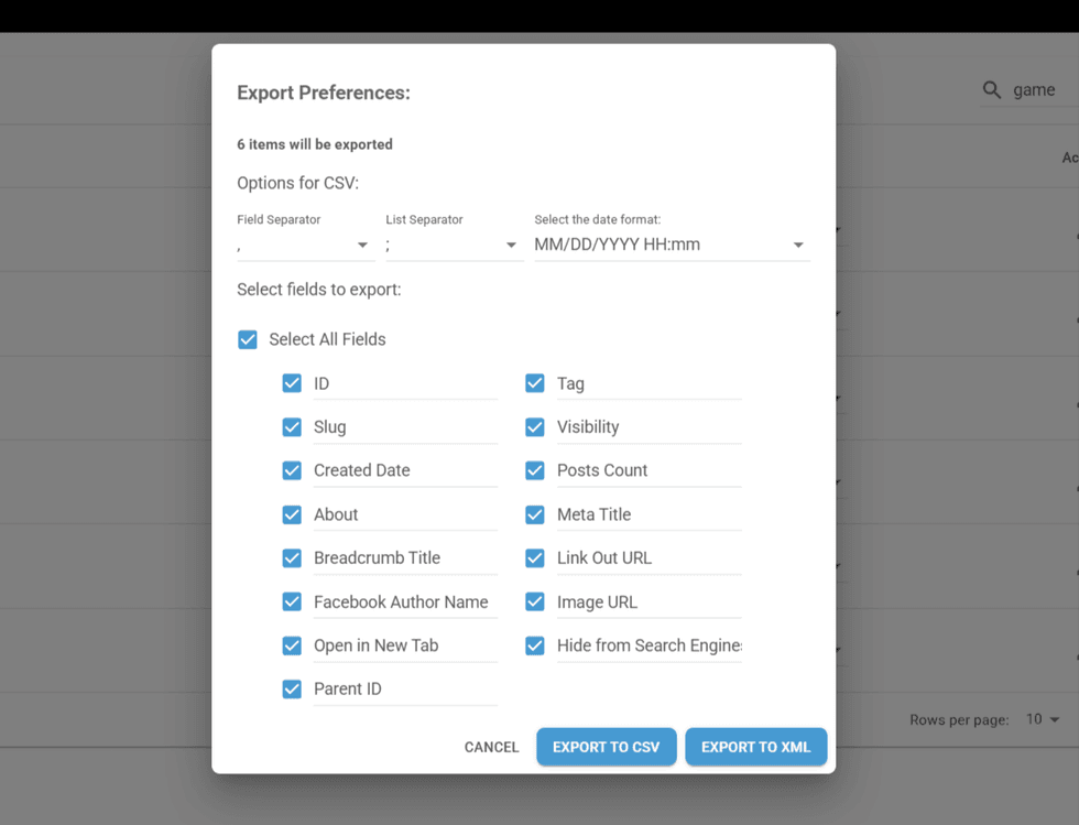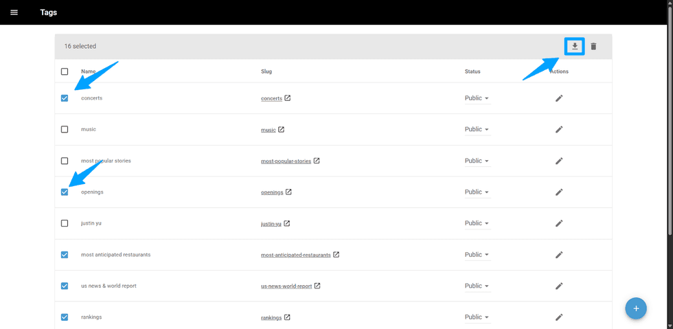 Inside the Tags Dashboard, you can export all posts — either individually or in bulk — in XML or CSV format. There are several ways to export your tags, and we will explain each of them below.