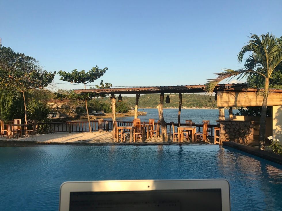 These days, I don't travel as much. Instead, I decided to move my permanent office (home!) to paradise instead. Sure beats driving to and from an office every day.