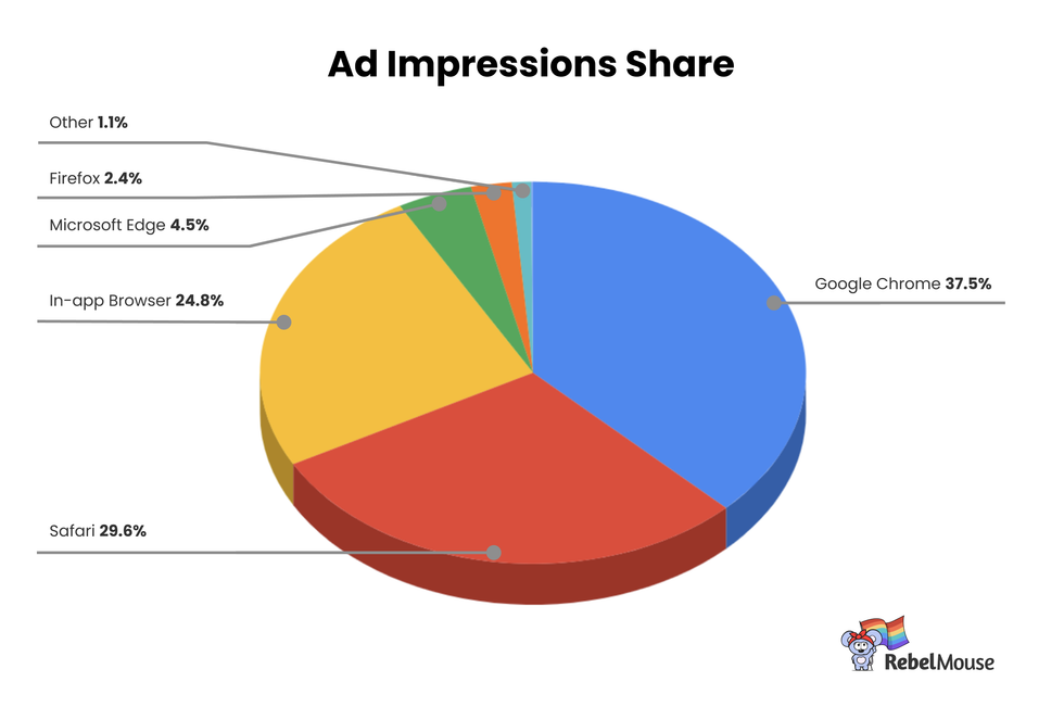 Here’s a chart to better visualize the share of ad impressions across Safari, Chrome, and other browsers: