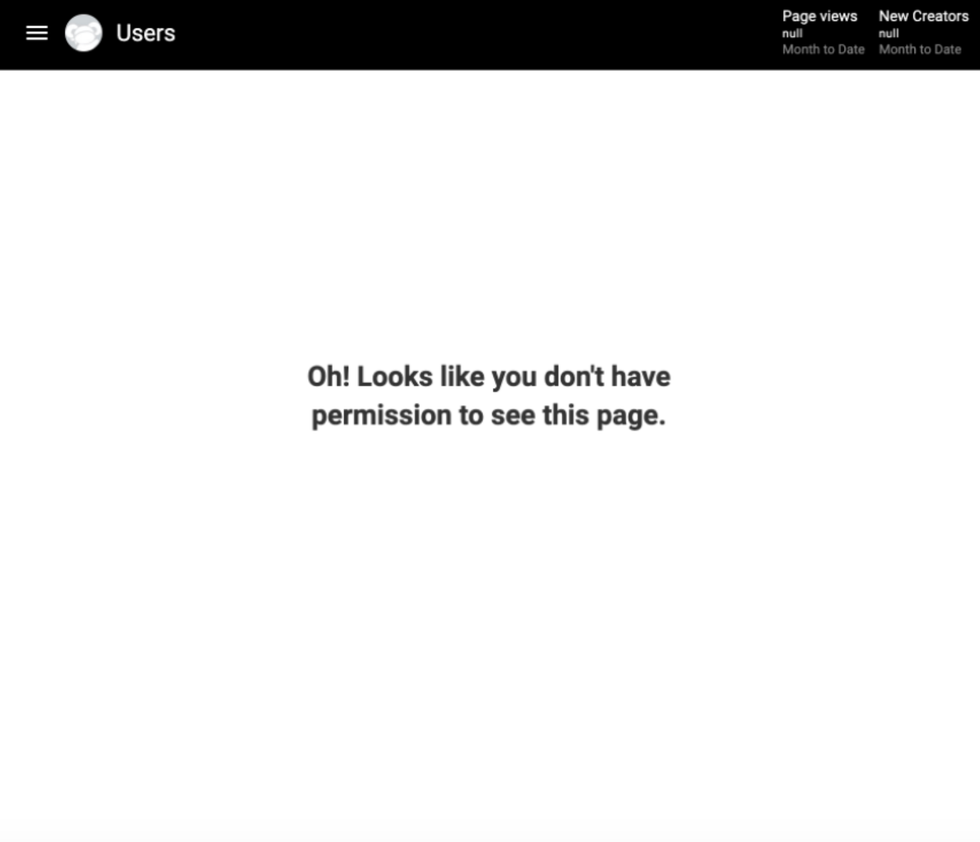 If a user does not have permission to access a certain page or dashboard, they will receive the following error message: