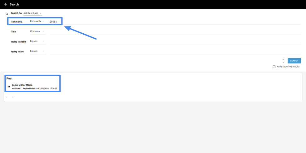With A/B test Case filter, you can search any B-Tests by: