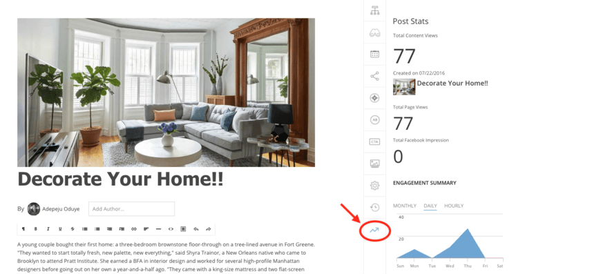 After you publish a post, you can view top-line statistics using the Posts Stats tab in the Entry Editor.