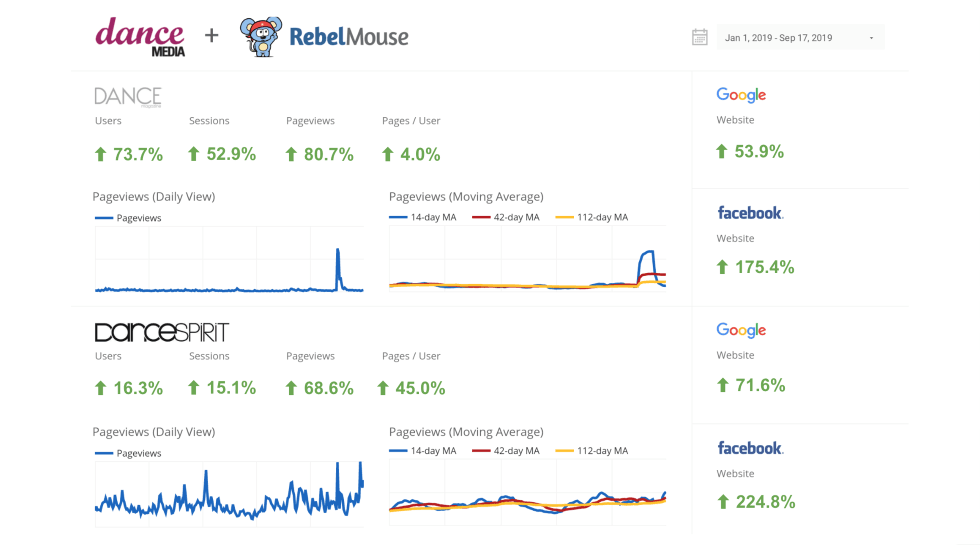 At RebelMouse, we operate off of a lean tech methodology that launches sites in weeks, not months. We act as your developers, UX experts, QA team, and designers all at the same time. Our team of Rebels also operate as a creative agency to ensure your content is successful on social, with SEO, and at making meaningful revenue.
