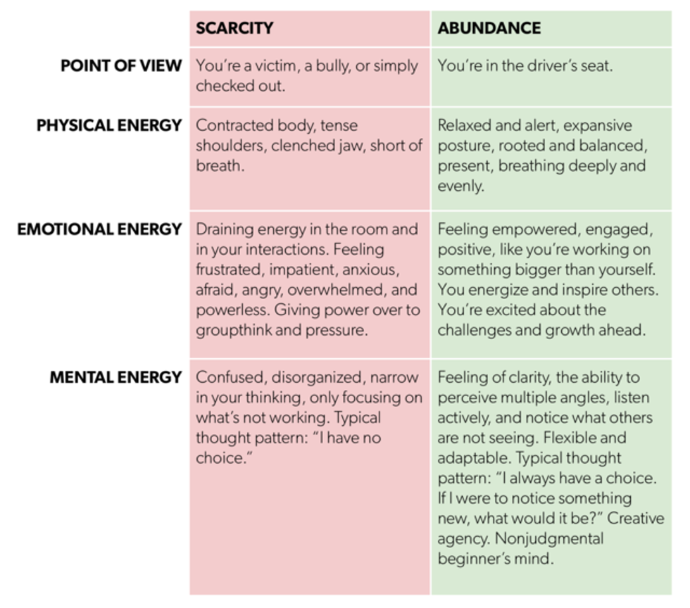 Abundant Thinking: At RebelMouse, we try to practice abundant thinking. Read more about what this means here. In short, workers often adopt a scarcity-driven mindset, fueled by the idea that there isn't enough time. A change of perspective can help reverse this world view. Abundant thinking can increase productivity and help you better understand the vast opportunities and achievements waiting for you. Here are some examples of the differences between a scarcity mindset and an abundant-thinking mindset:
